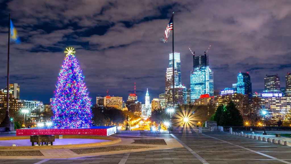 Yesterday evening I drove into Philadelphia to explore the city a little bit and hopefully capture some timelapses. I first went to the Philadelphia Christmas Village at City Hall but had no luck since it was very crowded and much smaller than I expected. I also went up to the One Liberty Observation deck and had troubles shooting there since they tinted the windows! Pretty frustrating to start! After that I decided to walk towards the famous Rocky steps, I had never been and knew there might be a cool view of the city from the steps. When I got there they had a real pretty Christmas tree set-up which was perfect for my photos!